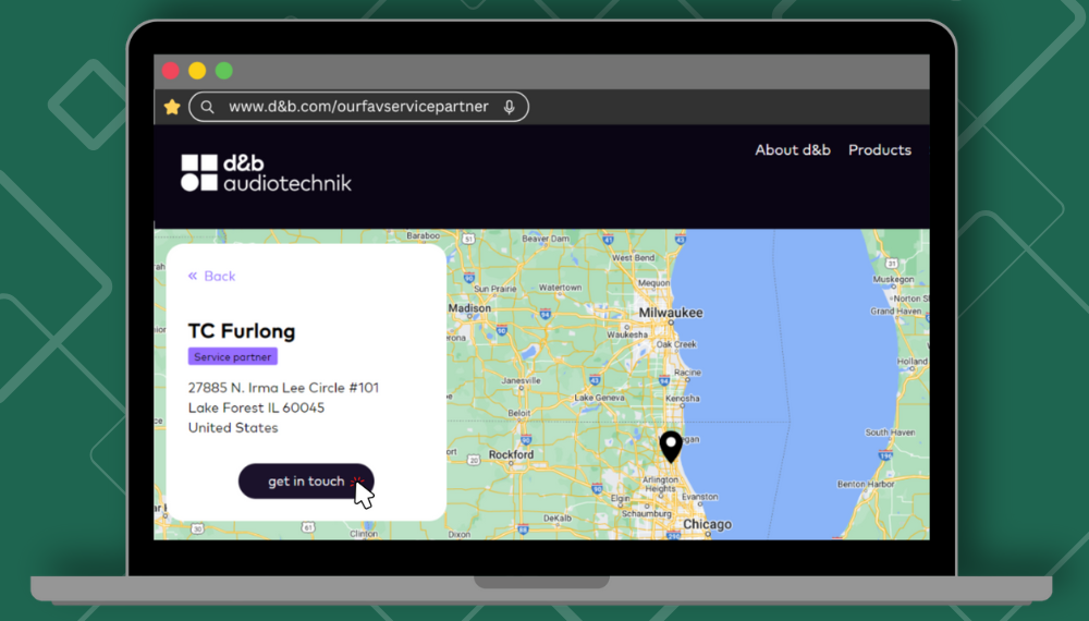 Interested in our d&b audiotechnik repair services? Send a message to repairs@tcfurlong.com or call our office at 847-367-9588 and our experienced team of audio technicians will help you get back on track for your next event.